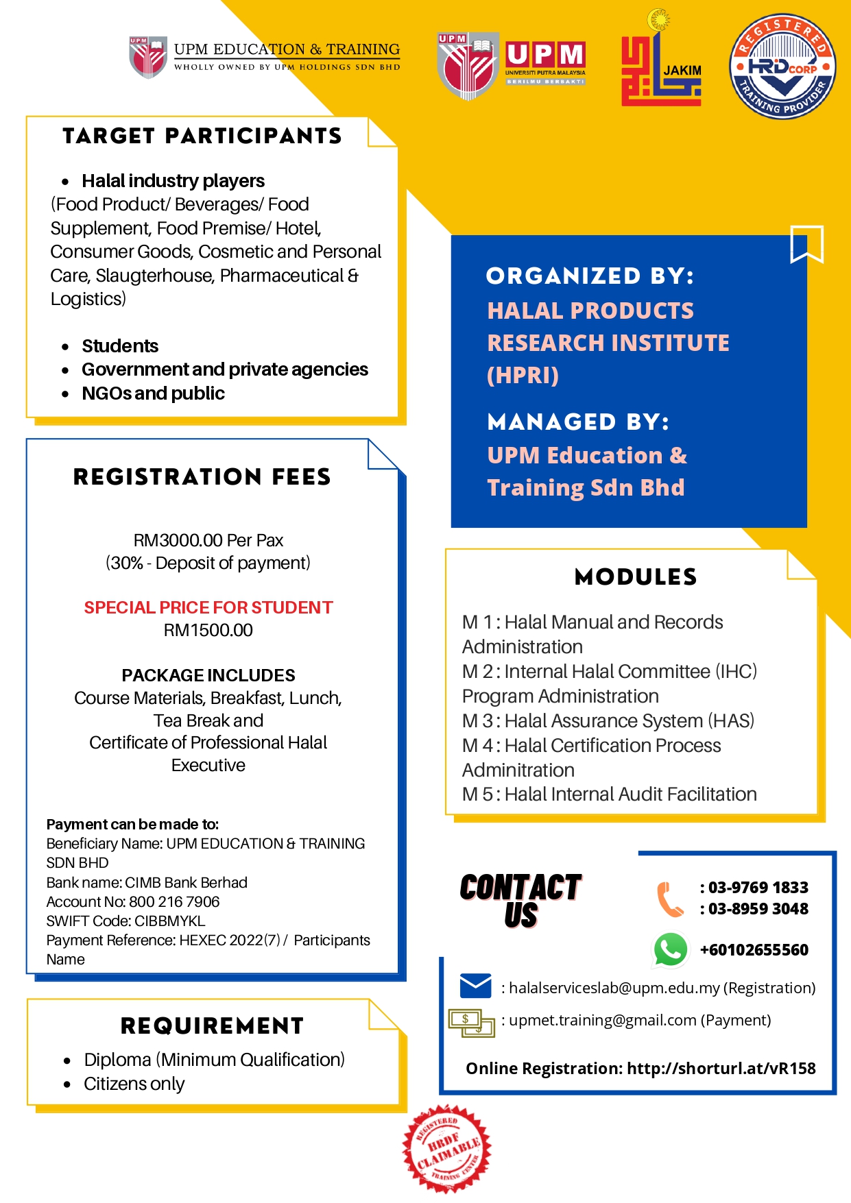 All trainings are HRDF claimable.
